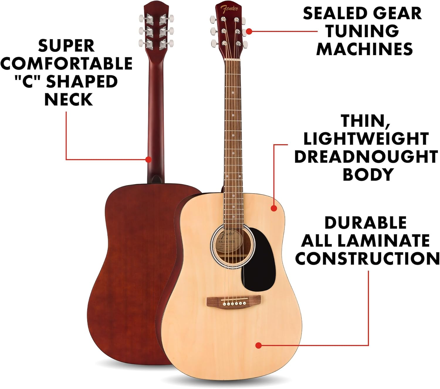 Don’t wait any longer to start playing the guitar of your dreams. Get your hands on the Fender FA-25 Dreadnought Acoustic Guitar in Natural finish today!